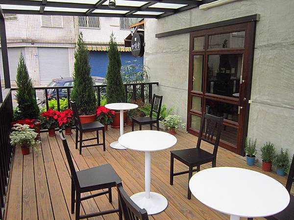 Seven Beans咖啡舍也有提供戶外座位暨吸菸區,對抽菸的朋友真是一大福音~外頭也擺上應景的聖誕紅,慢慢地感受到過節的氣氛囉