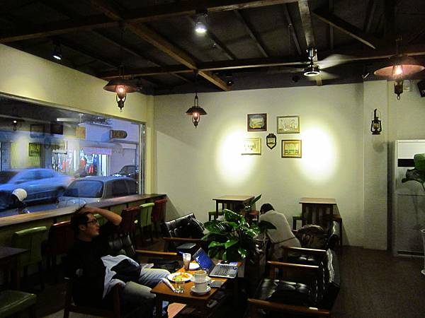 不知不覺,牛肉邊吃邊寫稿,一眨眼的時間天就黑了,接著就來看看Seven Beans咖啡舍的夜間氣氛