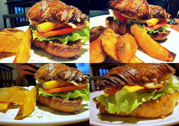 牛肉點了Seven Beans咖啡舍【燻雞肉可頌】,無論是生菜還是番茄都相當的新鮮,吃的到鮮甜的口感,滿足曾經做過三年冷盤的牛肉標準。還有就是可頌的餅皮部分咬起來非常酥軟,顏色雖然看起來有點深,口感可是一點都不含糊,相當值得推薦~C/P值很高!